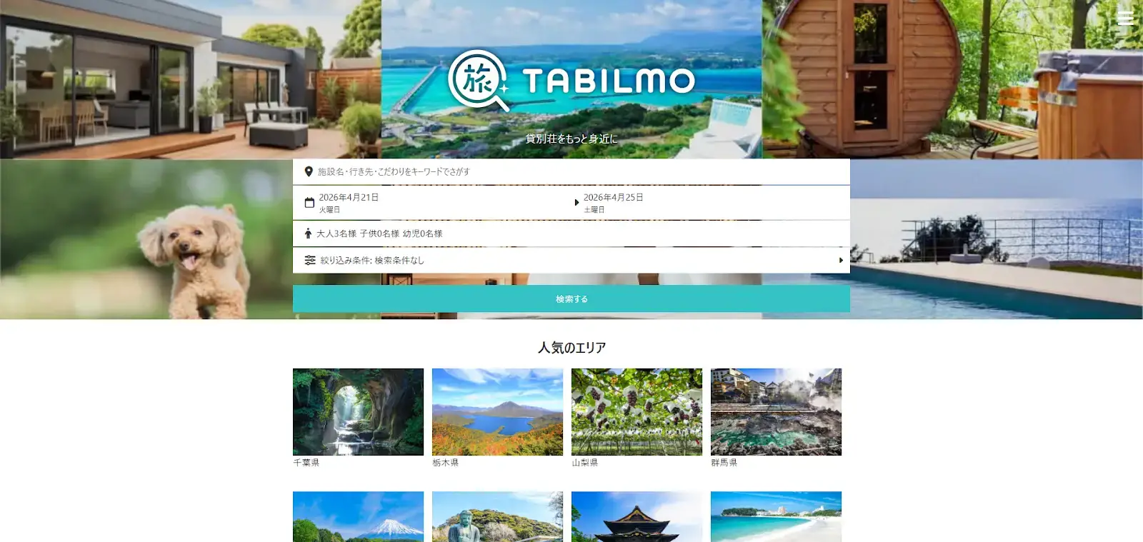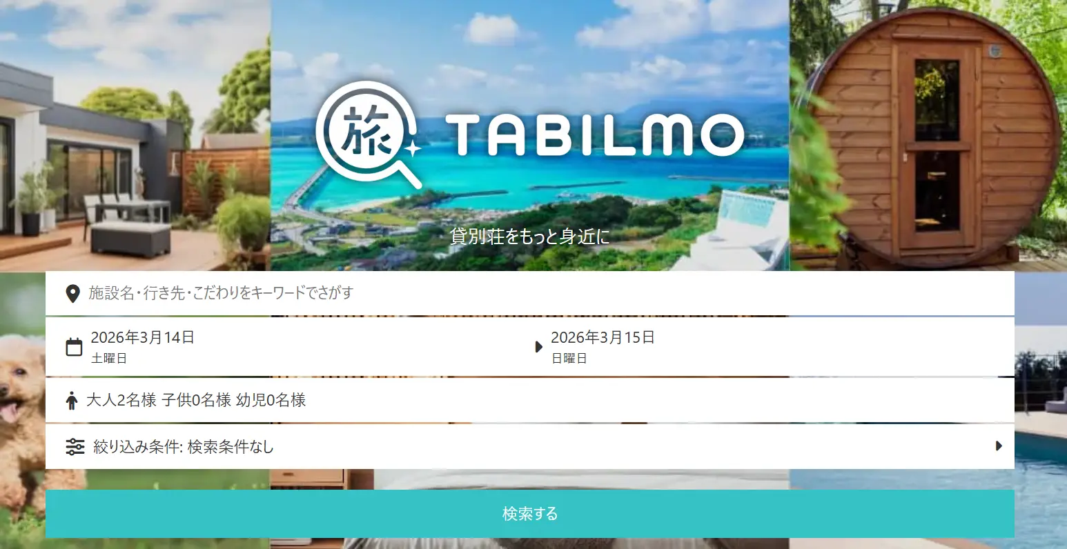貸別荘・コテージ専門の予約サイト「TABILMO(タビルモ)」です。
