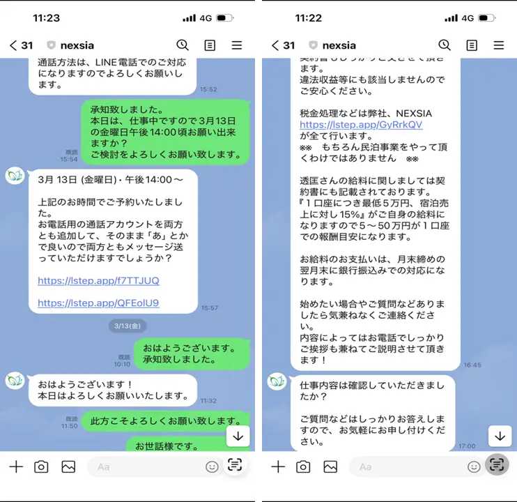 また、LINEに弊社のロゴを無断で利用し、当社名義を装った契約書(画像参照)を